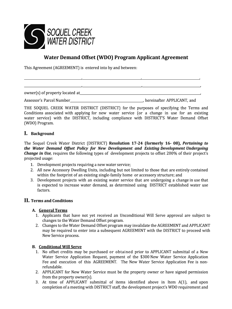 Get the free Water Demand Offset (WDO) Program Applicant Agreement