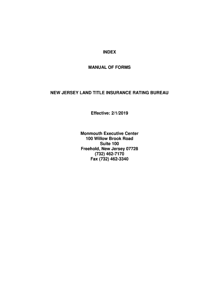 Get the free INDEX MANUAL OF FORMS NEW JERSEY LAND TITLE INSURANCE ...