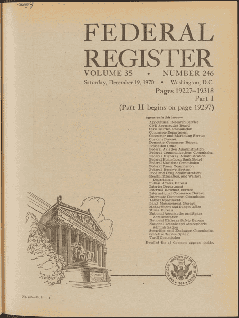 REGISTER O L U M E 35Saturday, December 19, 1970, N U M B E R 246Washington, D.C. Pages 1922719318