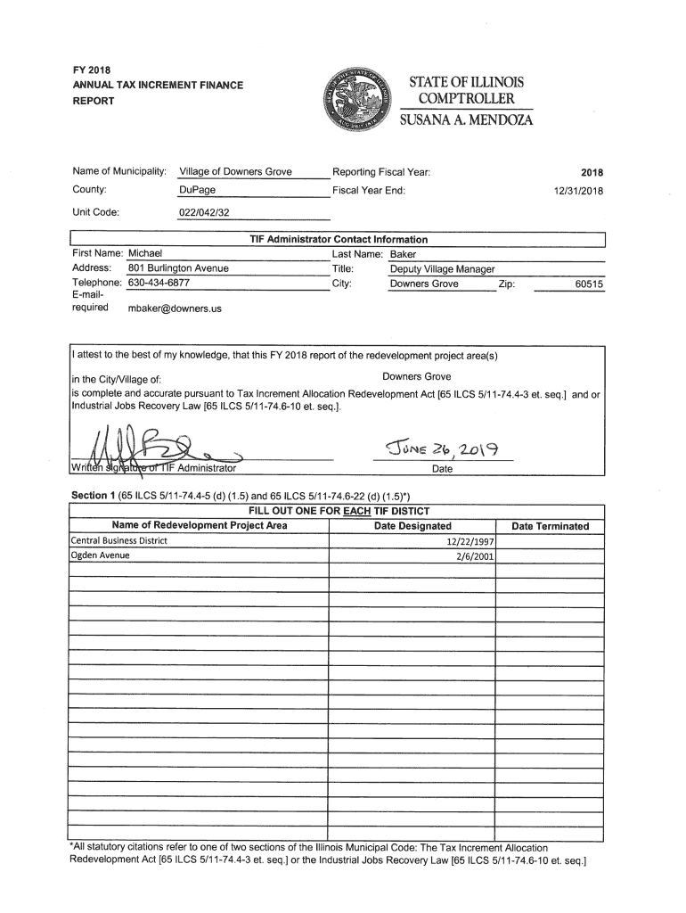 Get the free TIF Comptroller DT 2018.xlsx - Village of Oak Park