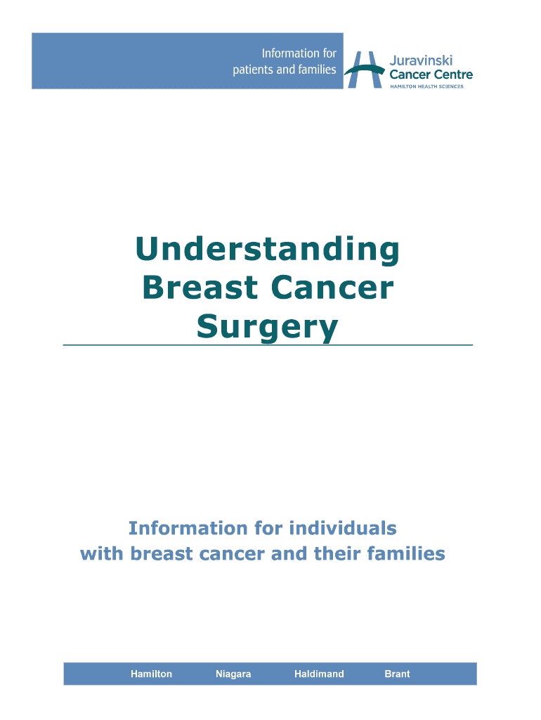 with breast cancer and their familiesHamiltonNiagaraHaldimandBrantUnderstanding Breast Cancer Surgery our patients and their families: