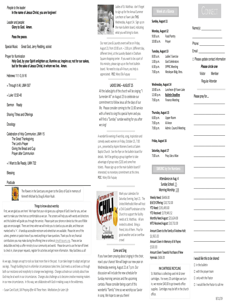 Glory to God. Amen. Ladies of St. Matthias: don\'t forget