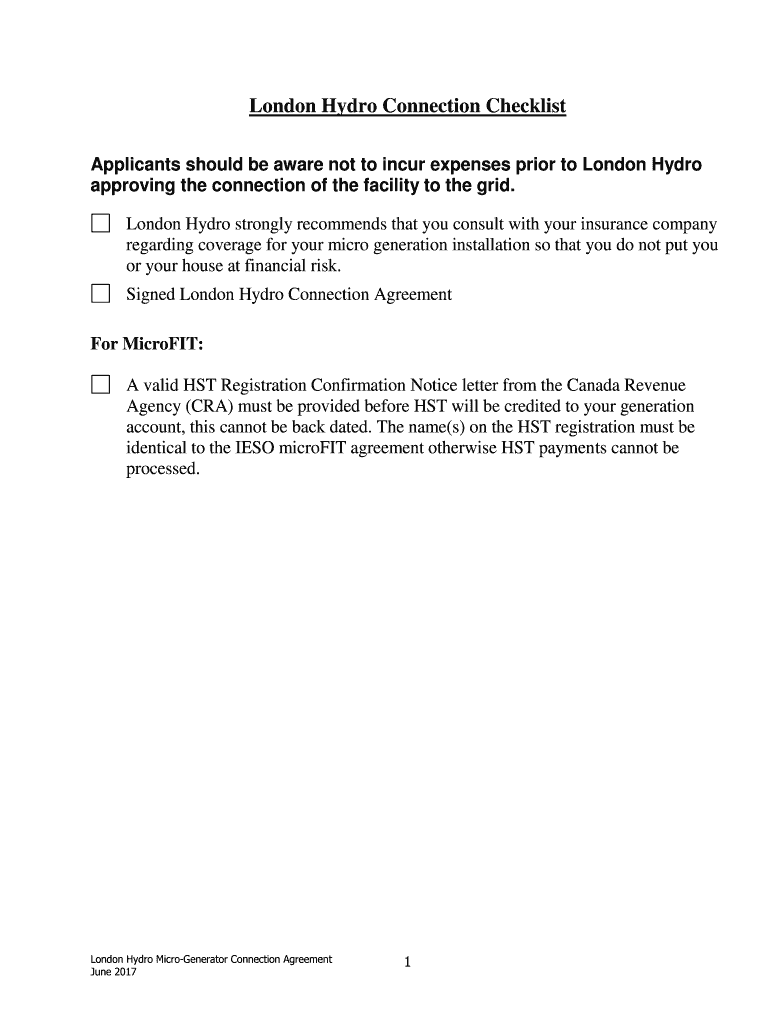 If there are any issues or further instructions, follow up with London Hydro to resolve them.