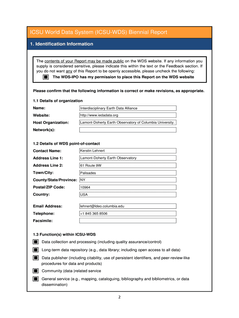 1. Identification Information contents of your Report may be made public on the WDS website. If any information you