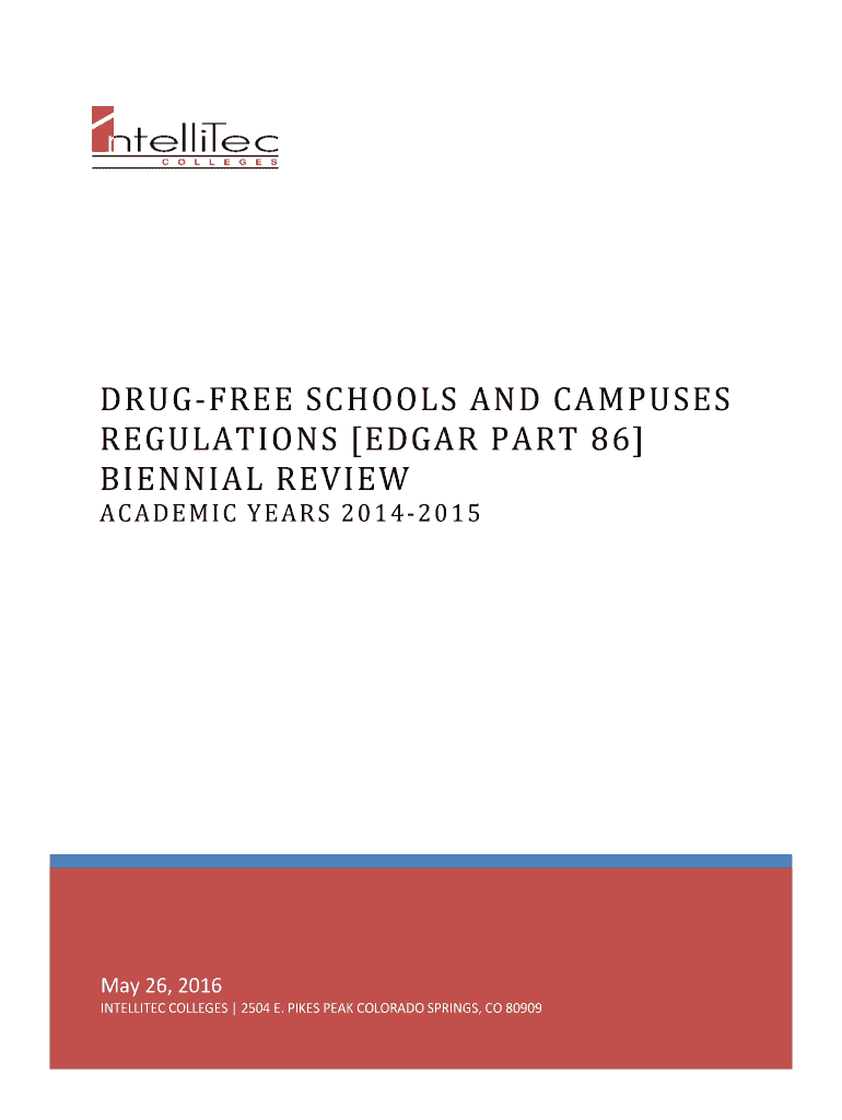 DEGREE SCHOOLS AND CAMPUSES REGULATIONS EDGAR PART 86 BIENNIAL REVIEW ACADEMIC YEARS 20142015May 26, 2016 INTELLIGENCE COLLEGES 2504 E. PIKES PEAK COLORADO SPRINGS, CO 80909TABLE OF CONTENTS Introduction/Overview