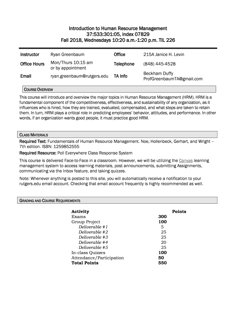 Get the free Introduction to Human Resource Management 37:533:301:05 ...
