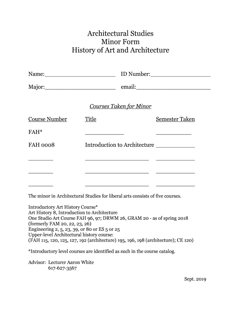 Get the free Architectural Studies Minor Form History of Art and Architecture - ase tufts