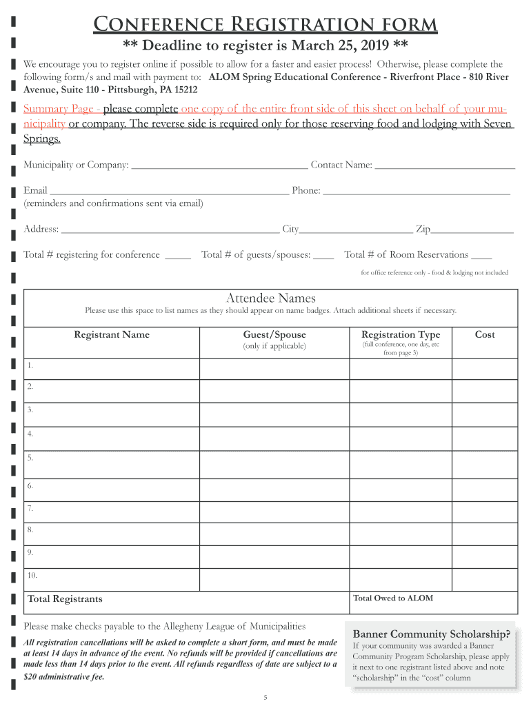 Registrant and Food & Lodging Information April 47, 2019Seven Springs Mountain Resort Building a Solid Foundation for Your Community Tentative Educational Topics Include: Sound Policy Recommendations
