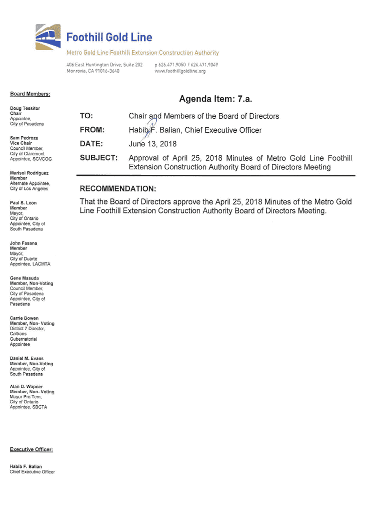 Agenda Item 7.a. Metro Gold Line Foothill Extension Construction Authority Board Meeting Minutes Page 1 of 8April 25, 2018 DRAFT UNTIL APPROVED BY BOARD OF DIRECTORSMetro Gold Line Foothill Extension