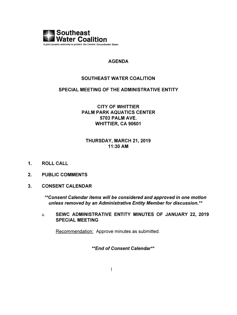 SPECIAL MEETING OF THE ADMINISTRATIVE ENTITY