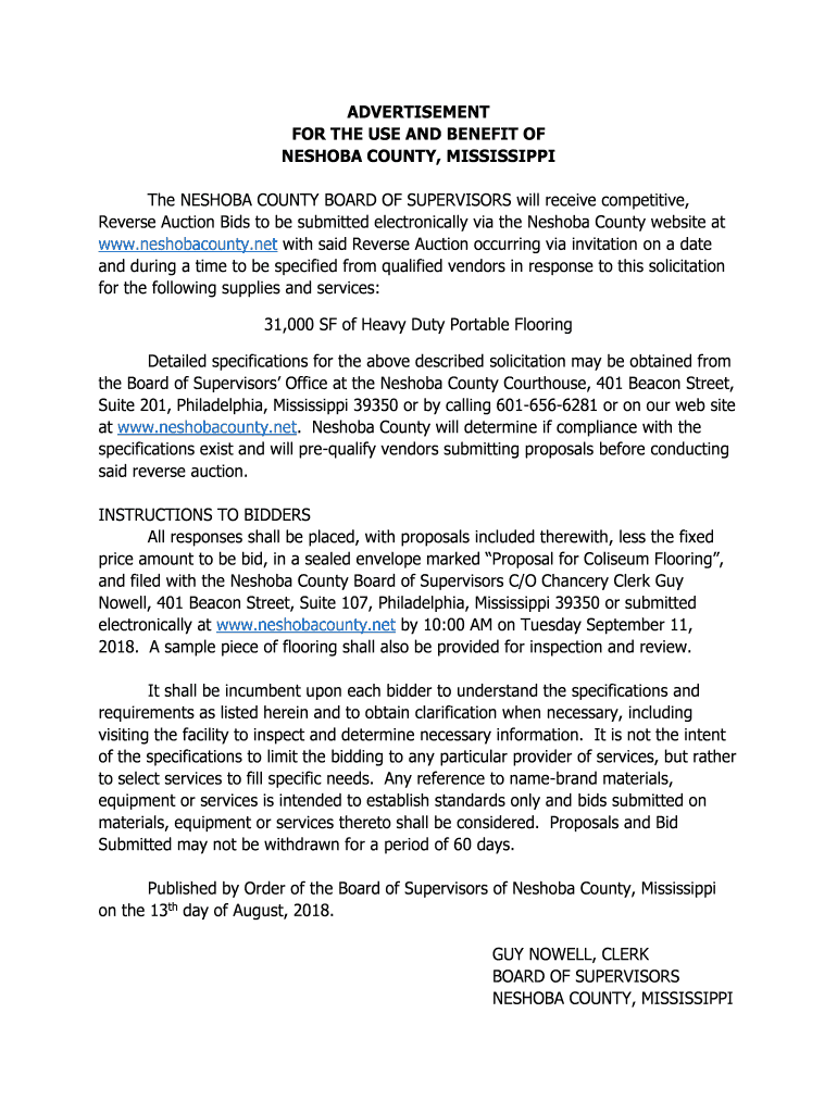 Get the free The NESHOBA COUNTY BOARD OF SUPERVISORS will receive competitive,