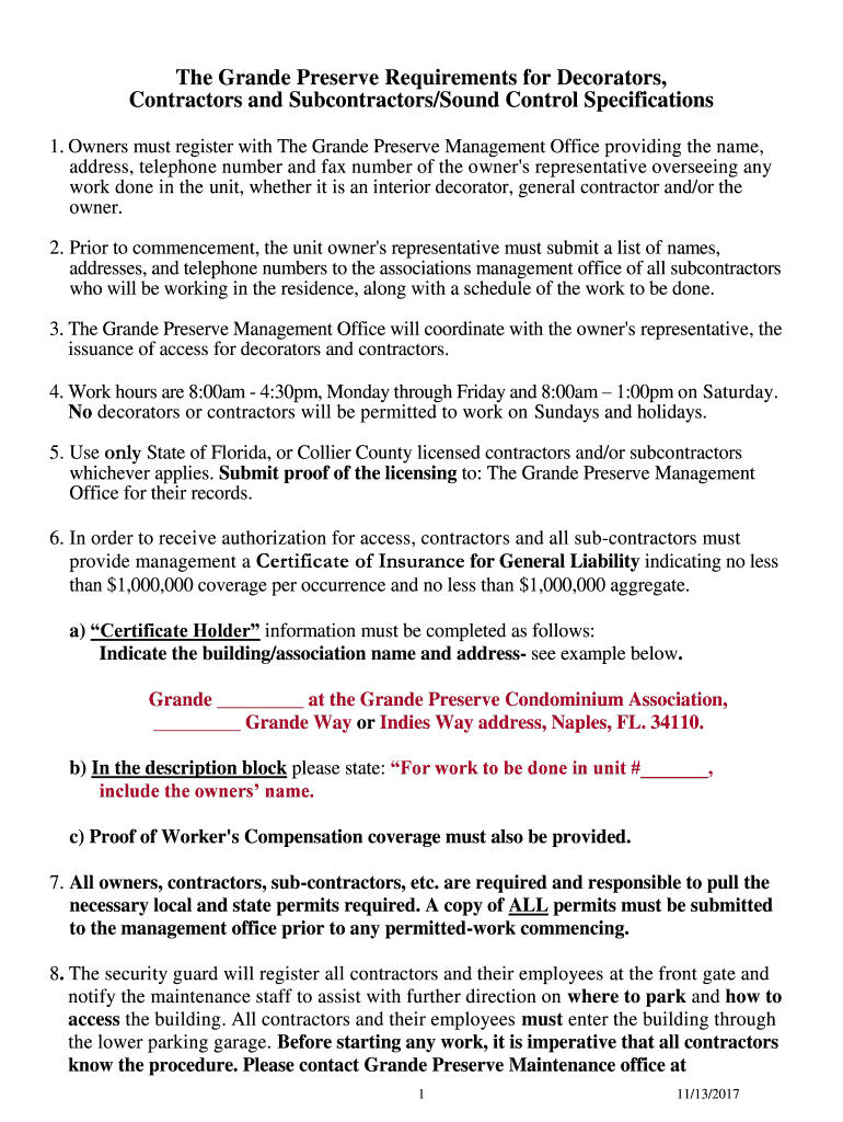 1. Owners must register with The Grande Preserve Management Office providing the name,