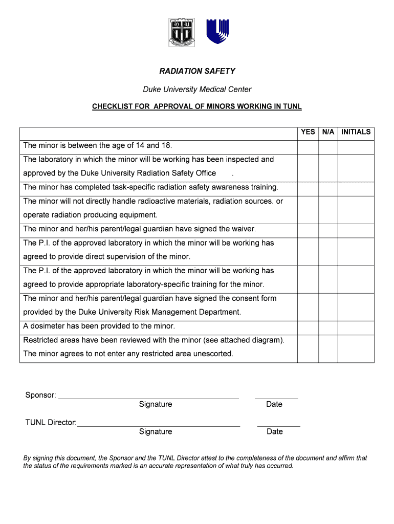 CHECKLIST FOR APPROVAL OF MINORS WORKING IN TUNE