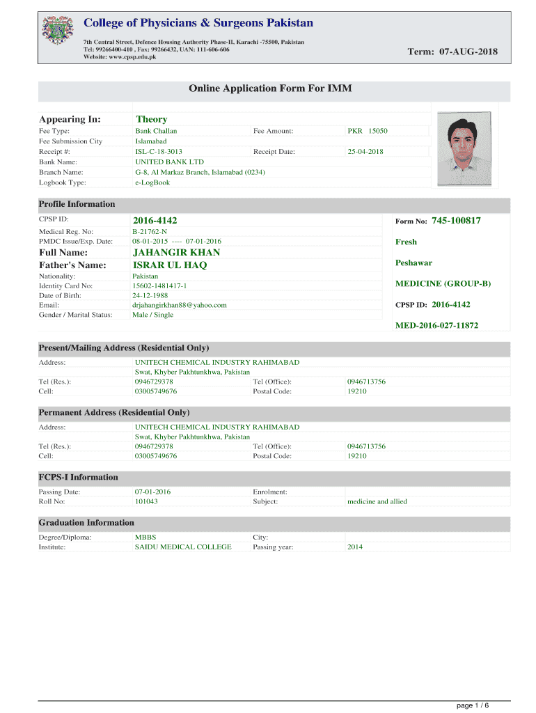 College of Physicians & Surgeons Pakistan 7th Central Street, Defense Housing Authority Phase, Karachi 75500, Pakistan Tel: 99266400410, Fax: 99266432, UAN: 111606606 Website: www.cpsp.edu.pkTerm: