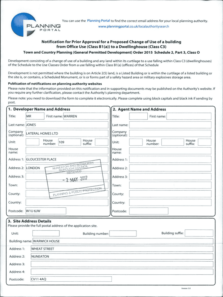 You can use the Planning Portal to find the correct email address for your local planning authority. P L A N N I N G00,www.planningportal.co.uk/IocalauthoritysearchPORTALNotification for Prior to