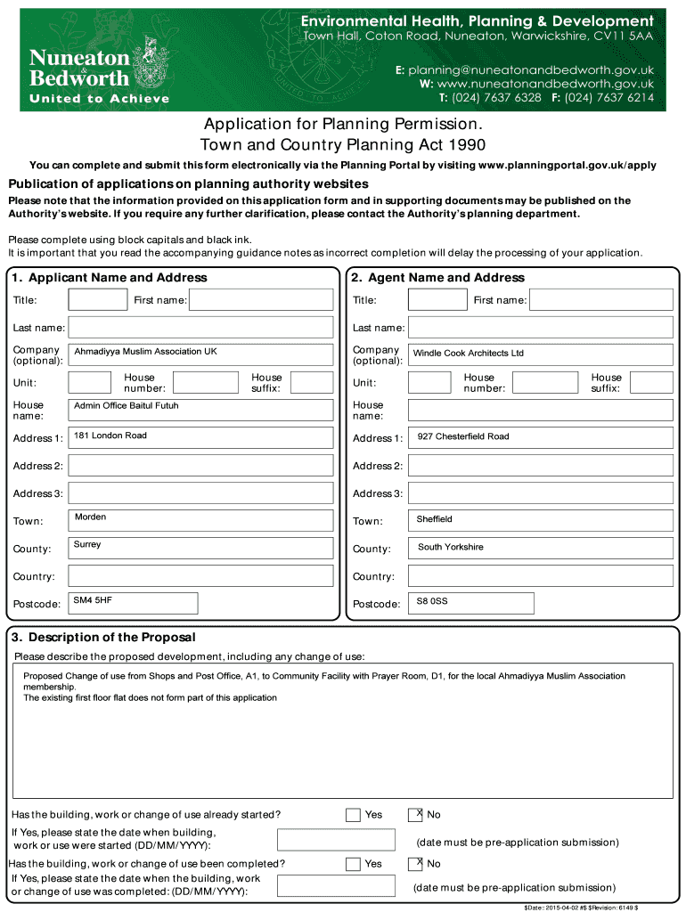 You can complete and submit this form electronically via the Planning Portal by visiting www.planningportal.gov.uk/applyPublication