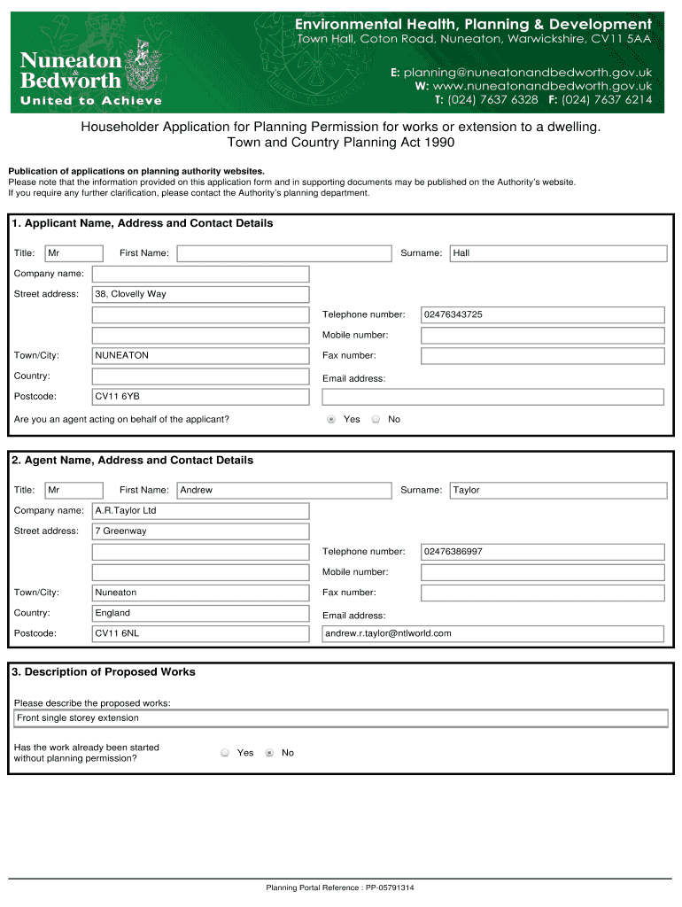 Householder Application for Planning Permission for works or extension to a dwelling.