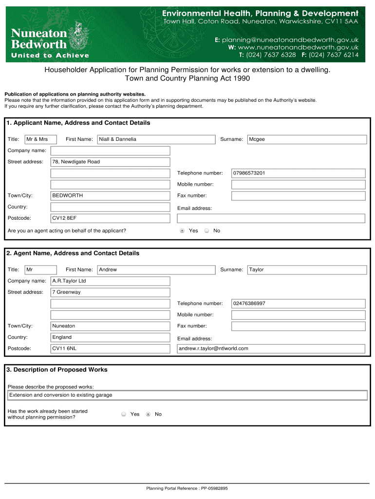 Householder Application for Planning Permission for works or extension to a dwelling. Town and Country Planning Act 1990 Publication of applications on planning authority websites. Please note that