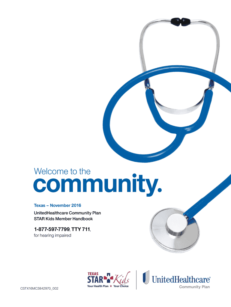 Community. Welcome to the Texas November 2016 UnitedHealthcare Community Plan STAR Kids Member Handbook18775977799, TTY 711, for hearing impairedCSTX16MC3842970 002Counties Served: Anderson, Angelina,