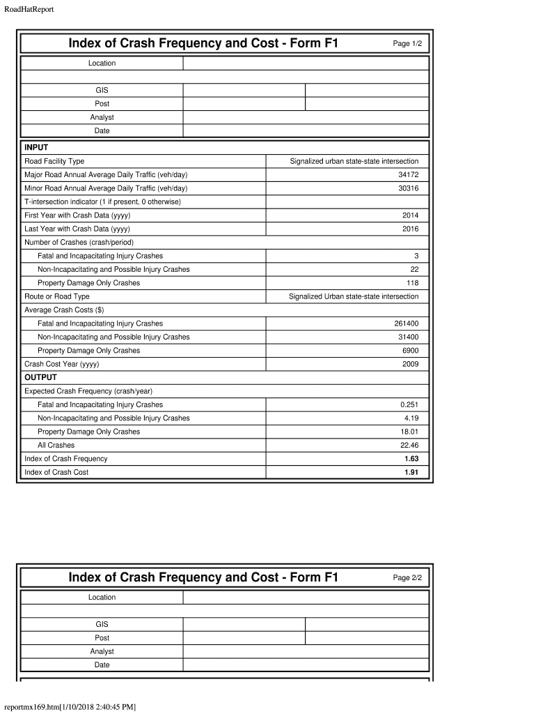 Get the free Index of Crash Frequency and Cost - Form F1 Page 1/2 Location