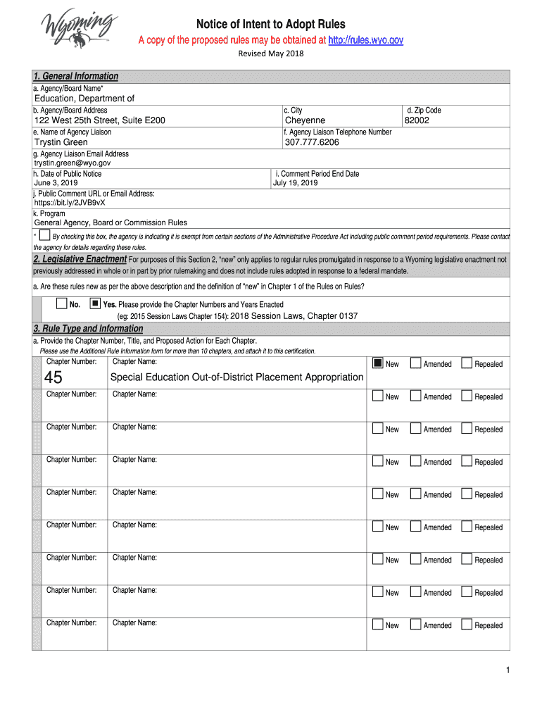 Get the free notice of intent to adopt rules and regulations - Wyoming ...