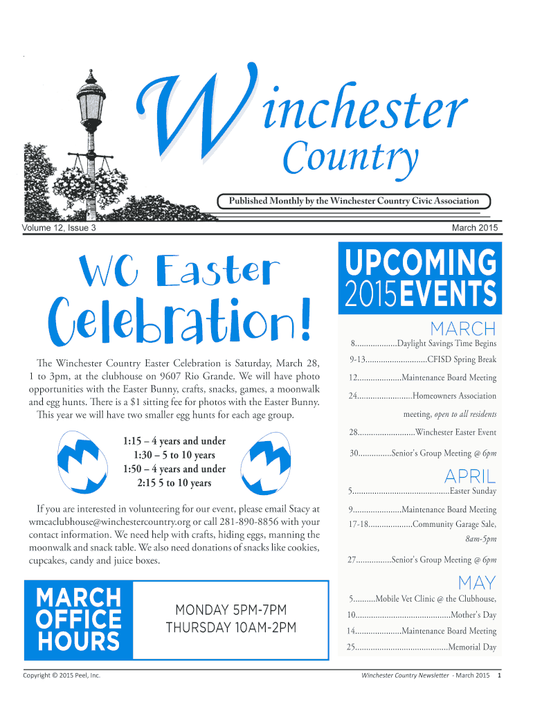 CountryPublished Monthly by the Winchester Country Civic AssociationVolume 12, Issue 3March 2015WC EasterCelebration! The Winchester Country Easter Celebration is Saturday,