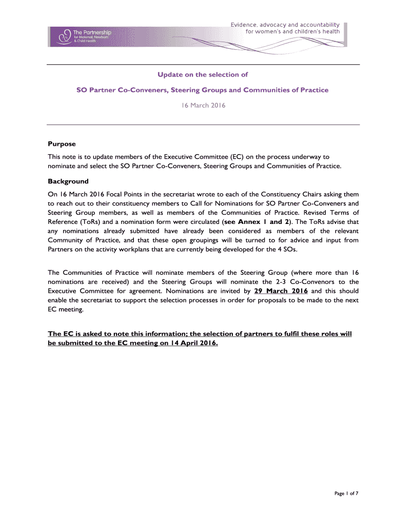 Get the free Update on the selection of SO Partner Co-Conveners ...