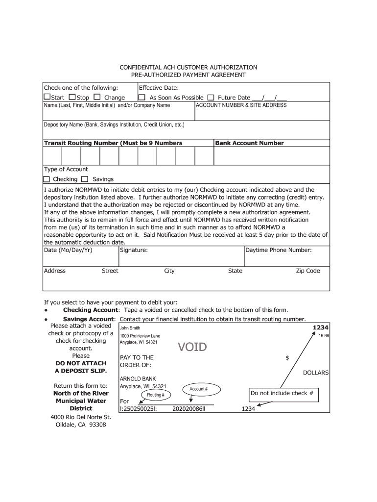 To use the ACH Customer Authorization Form, you must be a customer of NORMWD with a valid bank account from which payments will be debited.