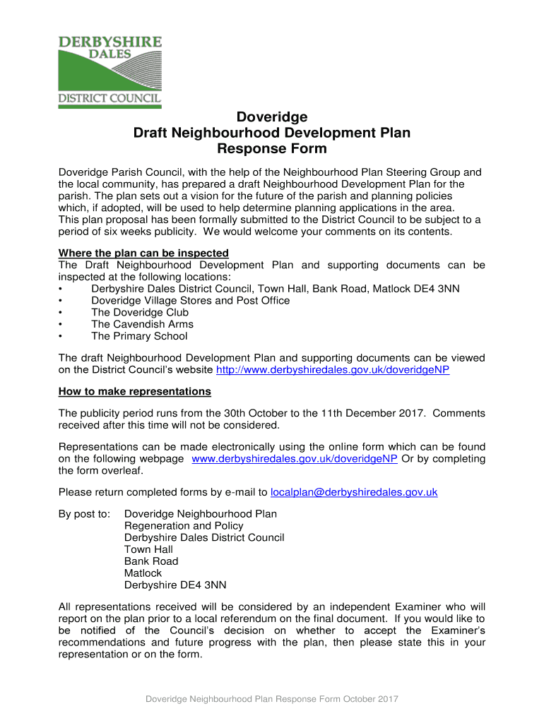 Dove ridge Parish Council, with the help of the Neighborhood Plan Steering Group and