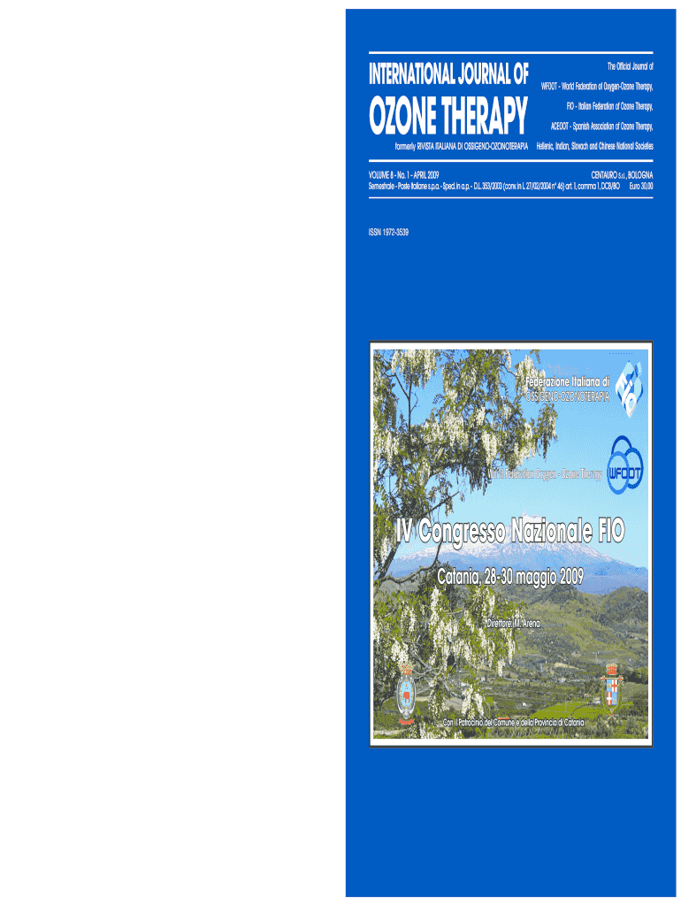 The Official Journal international JOURNAL OZONE THERAPY formerly RI VISTA ITALIAN DI OSSIGENOOZONOTERAPIAWFOOT World Federation of Oxybenzone Therapy, FIT Italian Federation of Ozone Therapy, AFOOT
