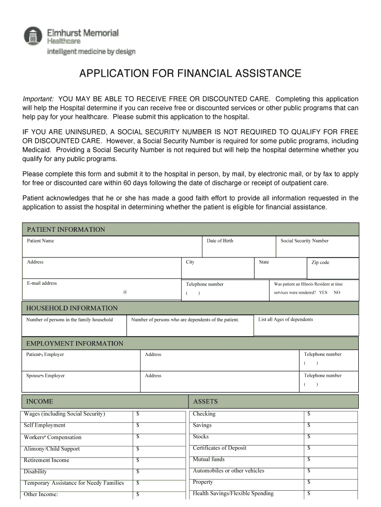 Get the free Hospital Financial Assistance Application