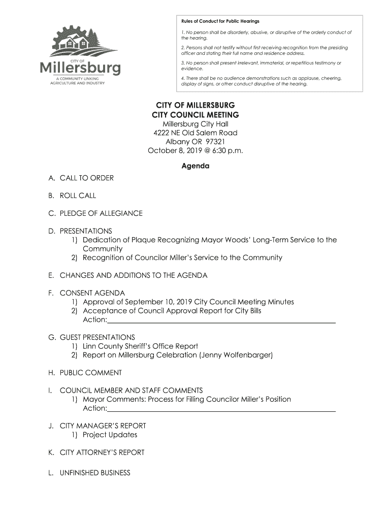 Get the free CITY OF MILLERSBURG CITY COUNCIL WORK SESSION
