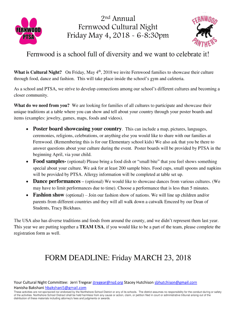 Get the free nd Annual Fernwood Cultural Night Friday May 4, 2018 - 6-8 ...