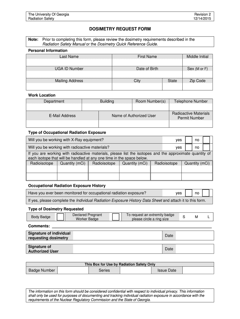 Get the free DOSIMETRY REQUEST FORM - UGA research - University of ...