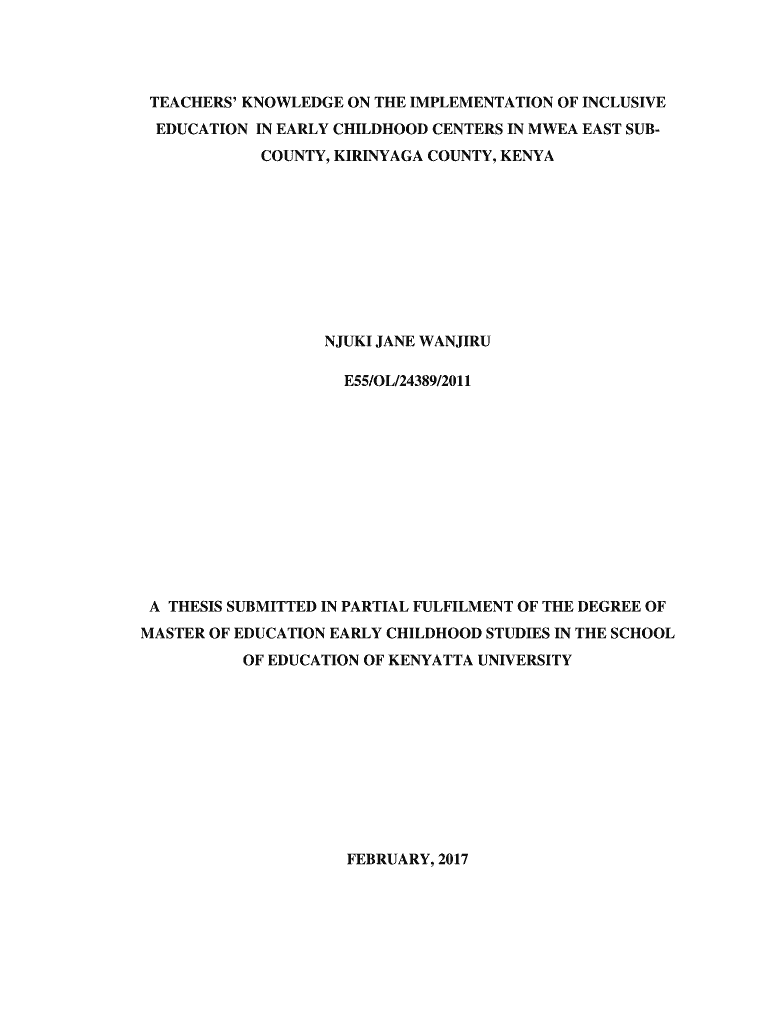 EDUCATION IN EARLY CHILDHOOD CENTERS IN MEA EAST COUNTY, KIRINYAGA COUNTY, KENYANJUKI JANE WANTING