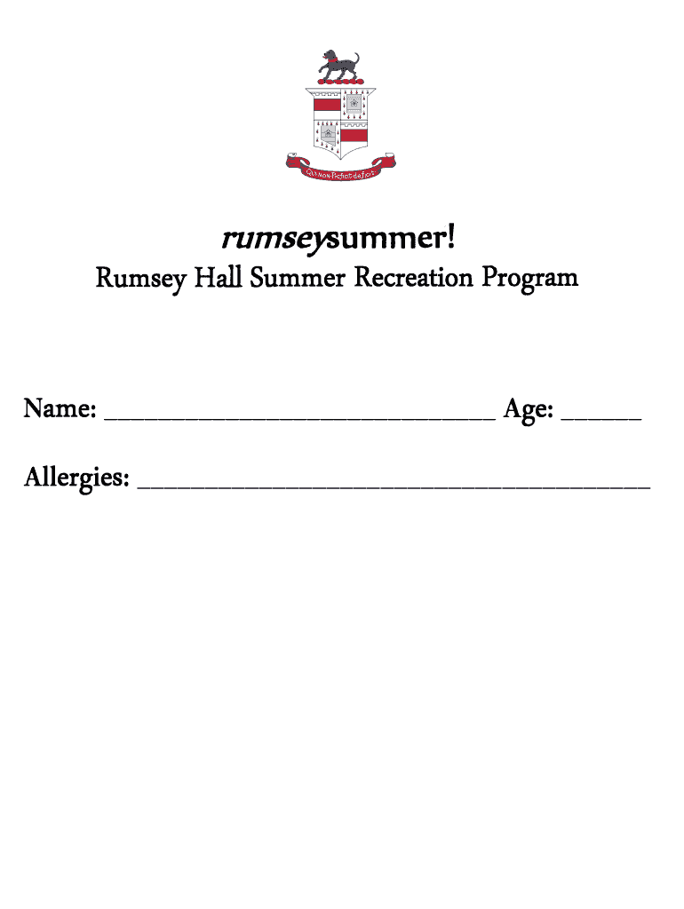 Ru111se)SUTTITI1 her! Ramsey Hall Summer Recreation Programmed: Age: Allergies: Consent to Treatment Ramsey Hall Parent or guardian to completeStudent Name Date of BirthAllergiesParent/Guardian Name