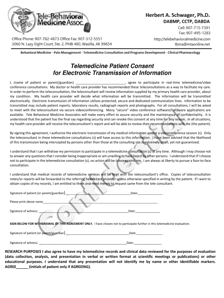 Anyone who wishes to receive medical care through telemedicine services needs to fill out a telemedicine patient consent form.