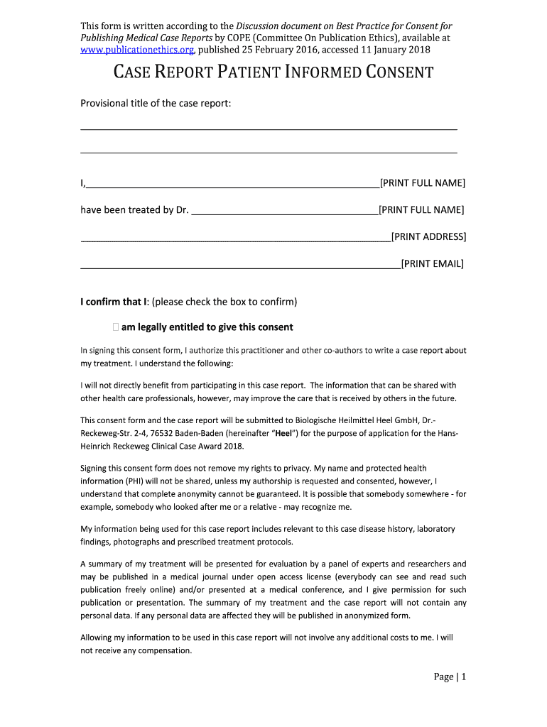 This form is written according to the Discussion document on Best Practice for Consent for Publishing Medical Case Reports by COPE (Committee On Publication Ethics), available at www.publicationethics.org,