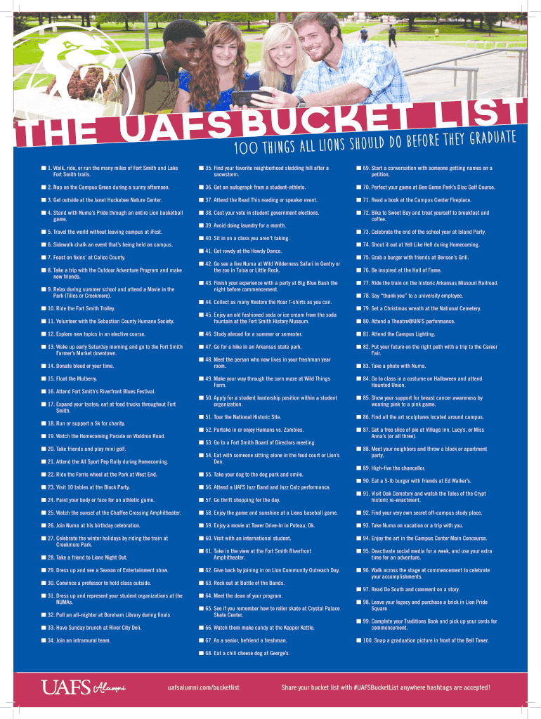 100 things all Lions SHN 1. Walk, ride, or run the many miles of Fort Smith and Lake