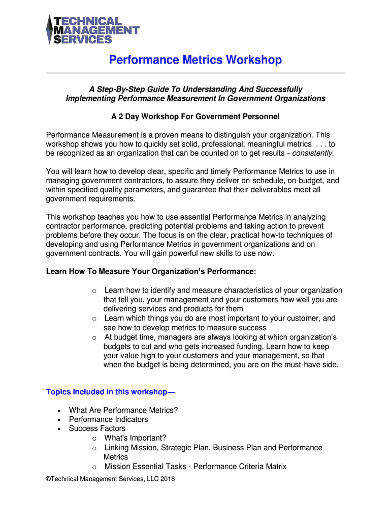 Fill out your performance metrics workshop online with pdfFiller!