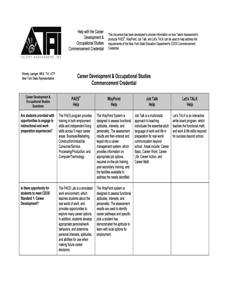 Help with the Career Development & Occupational Studies Commencement Credential Wendy Hunger, Med, TV, ATP New York State Representatives document has been developed to provide information on how