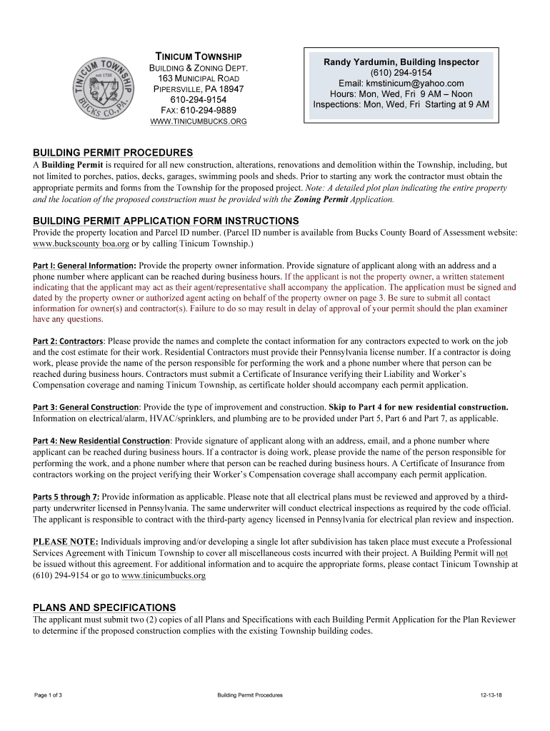 Get the free Building & Zoning Permits - Tinicum Township, Bucks County