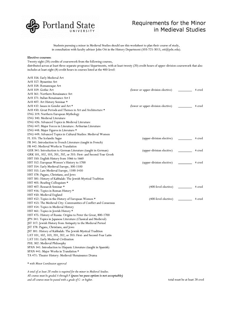 Students pursuing a minor in Medieval Studies should use this worksheet to plan their course of study,
