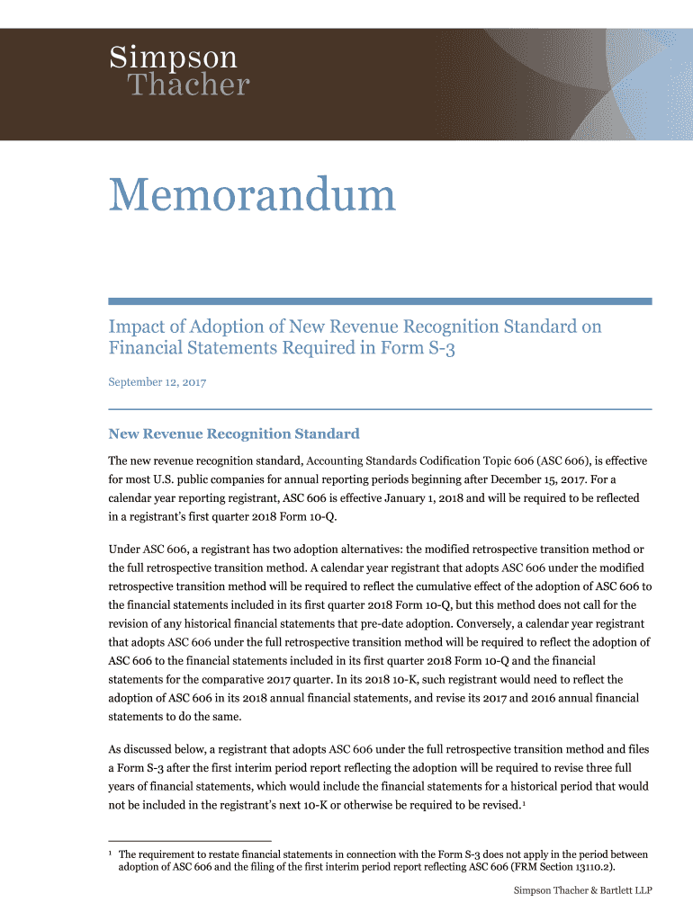 September 12, 2017New Revenue Recognition Standard