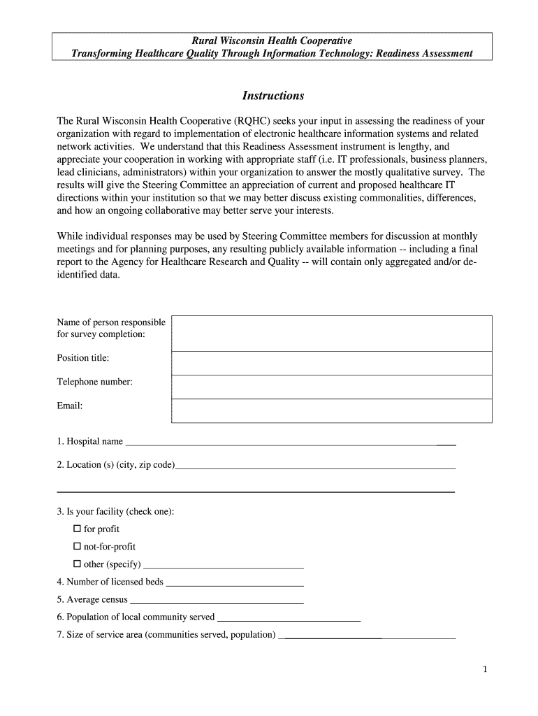 Transforming Healthcare Quality Through Information Technology: Readiness AssessmentInstructions