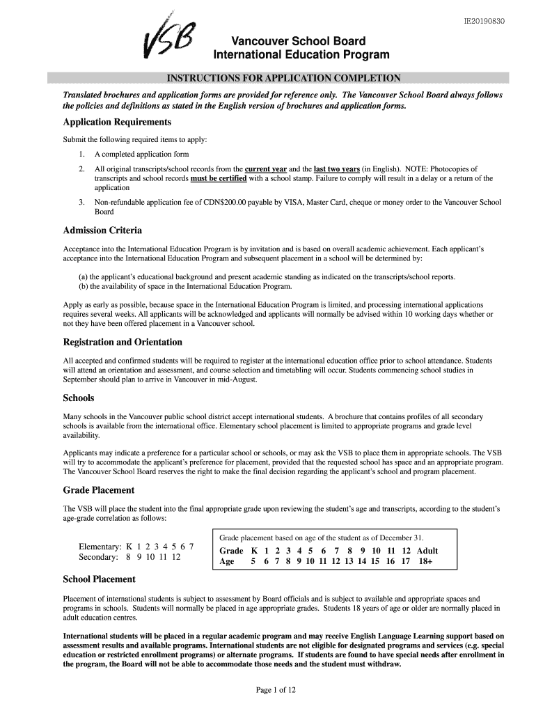 Translated brochures and application forms are provided for reference only. The Vancouver School