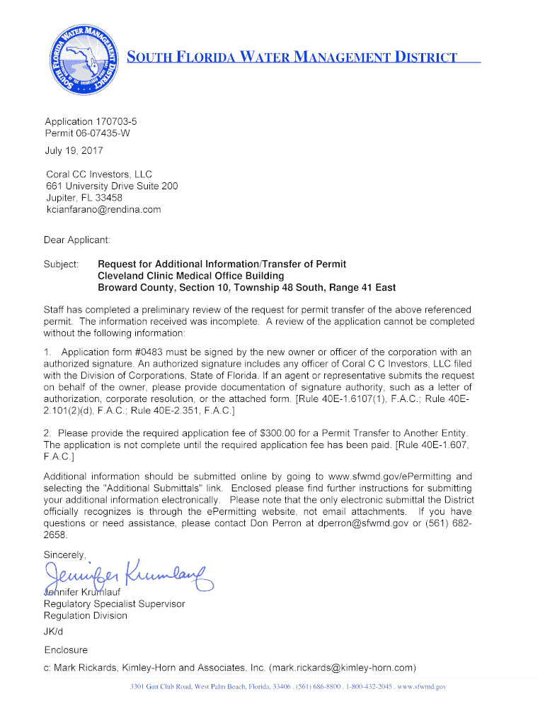 SOUTH FLORIDA WATER MANAGEMENT DISTRICTApplication 1707035