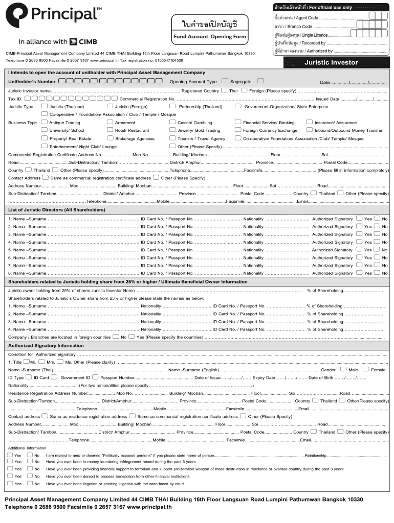 CIMBPrincipal Asset Management Company Limited 44 CLIMB THAI Building 16th Floor Tangshan Road Lumping Pathway Bangkok 10330 Telephone 0 2686 9500 Facsimile 0 2657 3167 www.principal.th Tax registration