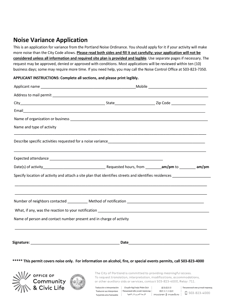 Get the free Noise Variance Application - The City of Portland, Oregon