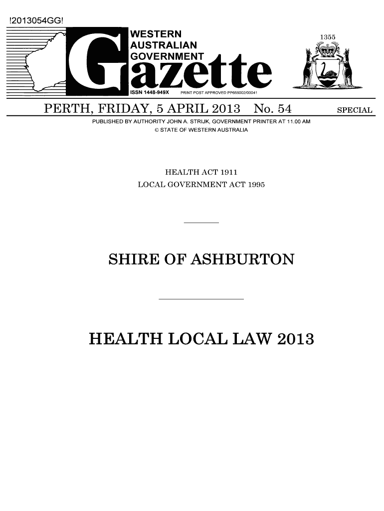 !2013054GG!WESTERN AUSTRALIAN GOVERNMENT ISSN 1448949×1355PRINT POST APPROVED PP665002/00041PERTH, FRIDAY, 5 APRIL 2013 No. 54 PUBLISHED BY AUTHORITY JOHN A. STRIKE, GOVERNMENT PRINTER AT 11.00 AM